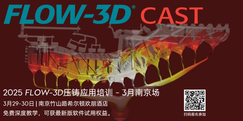 2025 FLOW-3D 壓鑄應用培訓將于3月29-30日在南京舉行。