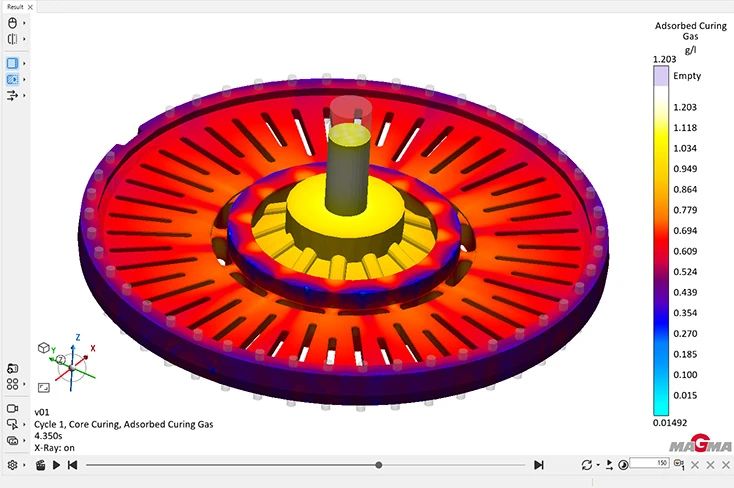 MAGMASOFT®6.0新增連續色標和升級版的X射線顯示,使模擬結果的評估更加真實和精確(圖2和圖3)。此外,色標的刻度值可以直接調整或用鼠標滾輪調整。