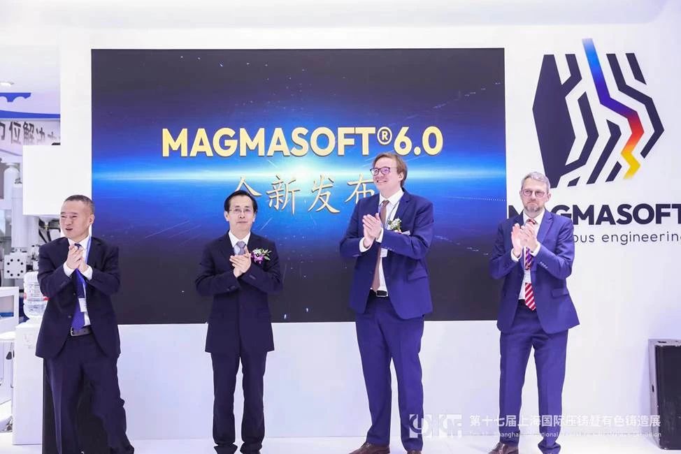 2023年7月12日,邁格碼團隊在上海壓鑄展的展臺現場進行了MAGMASOFT®6.0全新發布的啟動儀式。中國機械工程學會鑄造分會副理事長中國機械總院集團沈陽鑄造研究所有限公司董事長謝華生先生,中國機械工程學會鑄造分會秘書長劉鴻超先生,邁格碼全球總裁Mathieu Weber先生、邁格碼中國總經理Moritz Wedit先生以及行業內的相關領導、行業媒體出席此次活動。