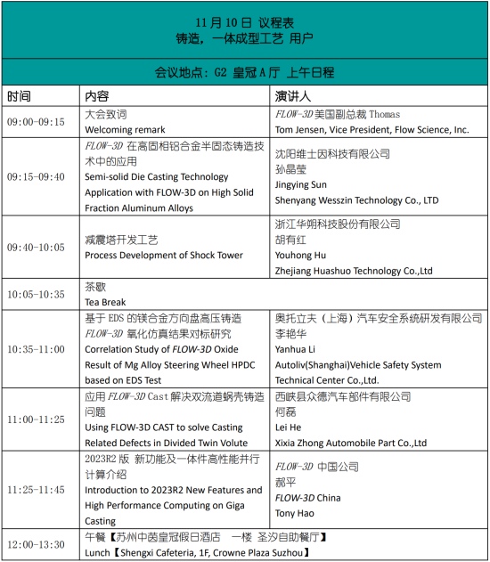 掃描二維碼報名,免費參會 FLOW-3D CAST用戶大會議程 如下: